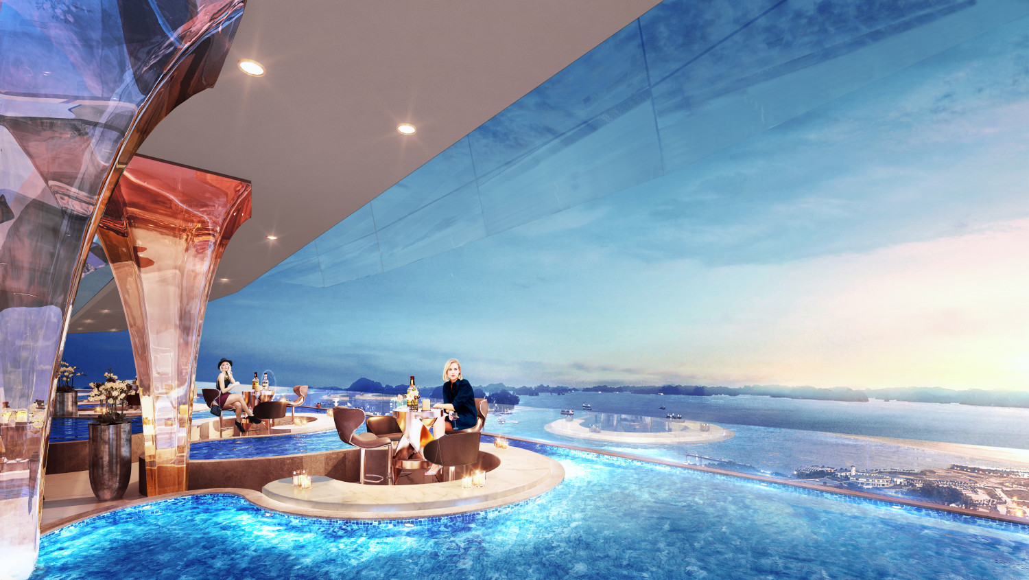 Avatar 空中酒吧 —— 灵感源自著名 3D 电影《阿凡达》,融合欧洲表现主义建筑艺术。在 143 米高空,伴随音乐律动,俯瞰下龙湾全景。