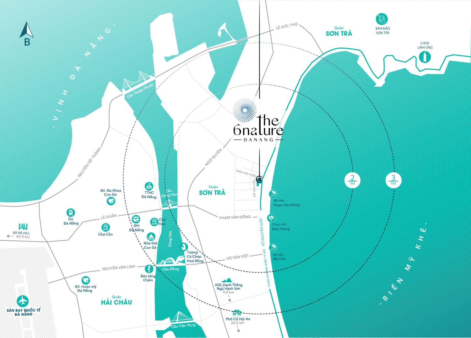 距离美溪海滩 3 分钟、韩江大桥 5 分钟、岘港国际机场 15 分钟、山茶半岛 28 分钟、会安古城 40 分钟。