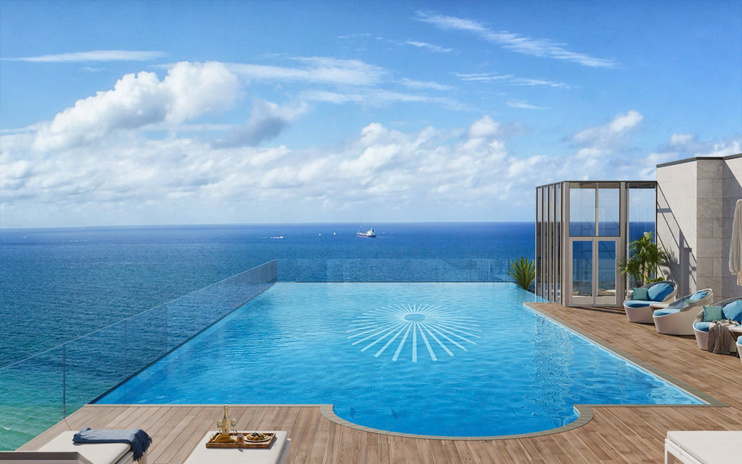 由 Finenco Architects 设计,建筑外立面采用透明玻璃幕墙,以海浪节奏为灵感的交错玻璃盒子呈现独特美学。整栋 40 层塔楼包含两个主要部分:486 套永久产权住宅公寓与 300 间酒店客房。项目占地面积 3,966 平方米,建筑密度为 58.75%。