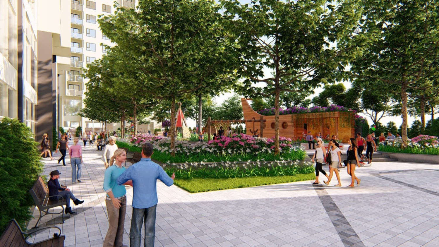 项目周边汇聚多个成熟的城市区域和住宅社区,包括 Dương Nội 都市区、Usilk、BID Residence、HPC Landmark 105、Văn Khê 都市区,形成一个充满活力、服务设施完善的居住环境。