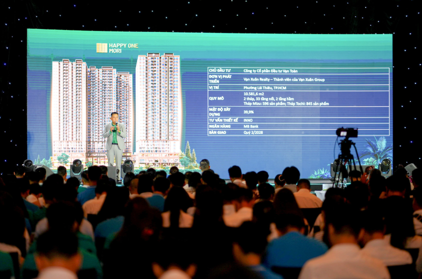这是首次在南北两地同时举办的项目启动仪式,近3,000名销售专业人士出席。此次活动彰显了Vạn Xuân集团在打造新住宅——Happy One Mori项目上的决心与战略远见。