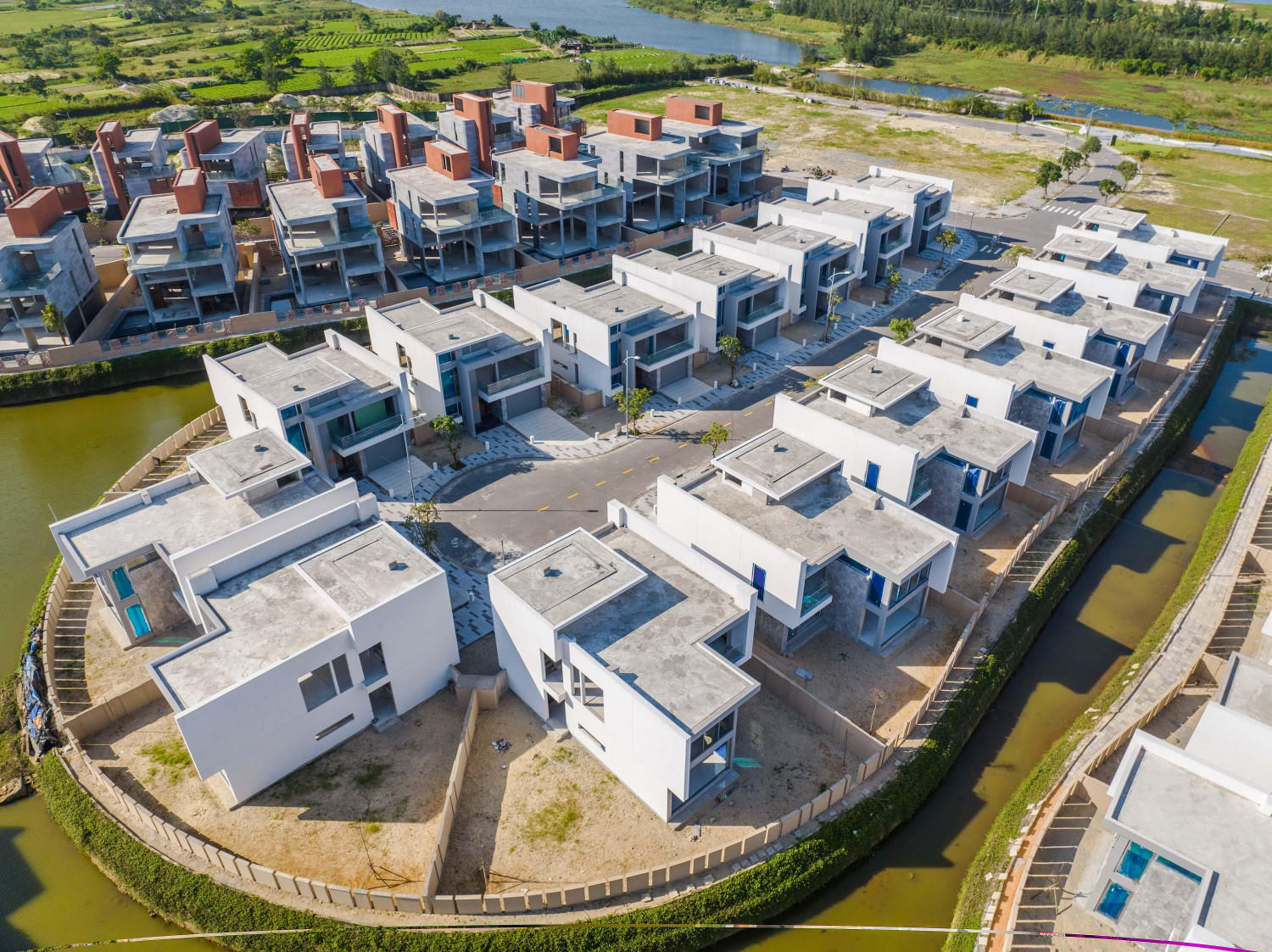 最大亮点在于,每一栋别墅都紧贴 Cổ Cò 河岸,同时拥有另一侧面向郁郁葱葱的生态水渠系统。