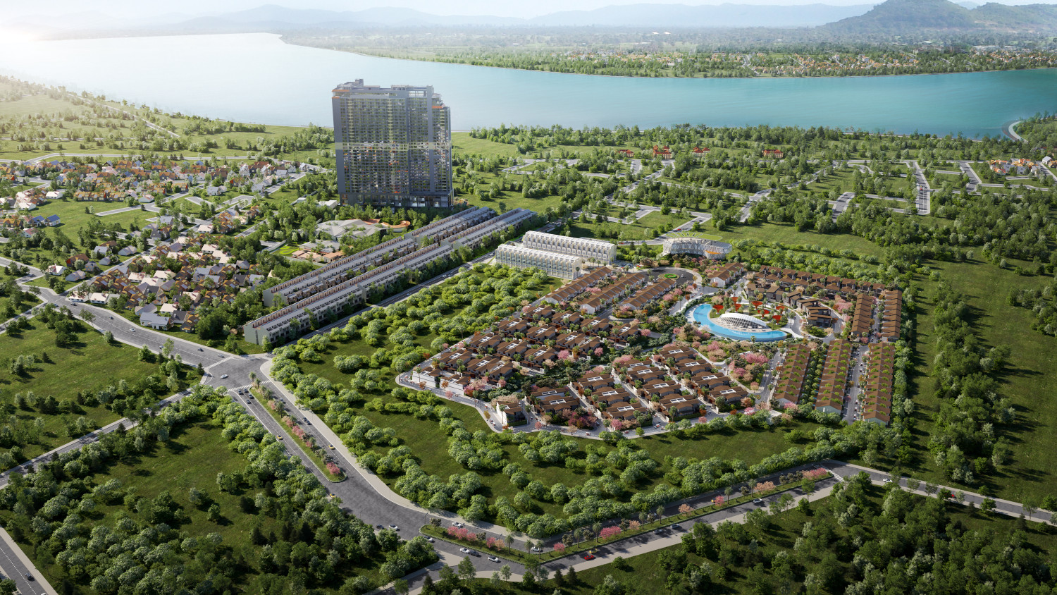 - 项目正坐落在 Thanh Thủy 天然矿物温泉之上,拥有天然矿物疗愈水源,有助于修复身心健康。