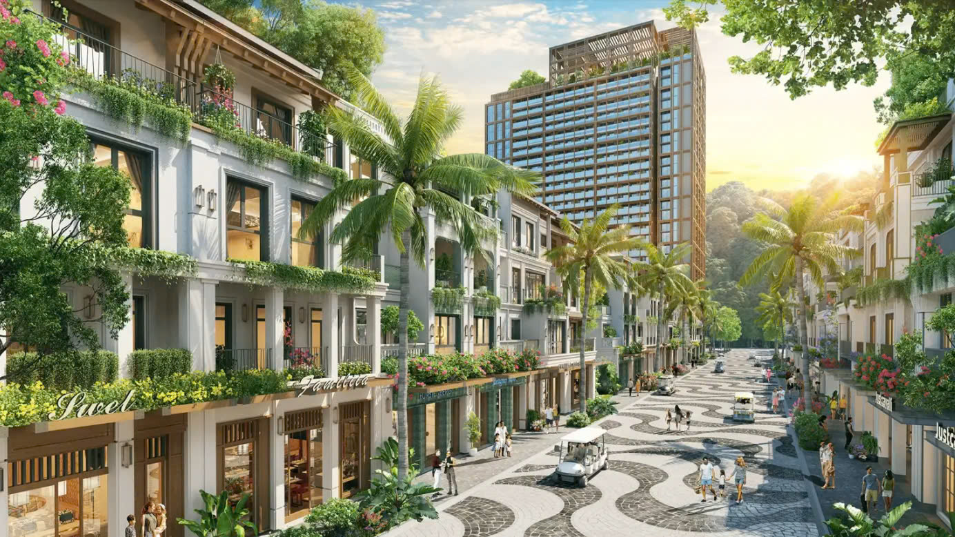 Xanh Island 规划了面积 60–120 m² 的商业街铺,4.5 层结构,非常适合投资者在 Cát Bà 结合经营与度假自住。